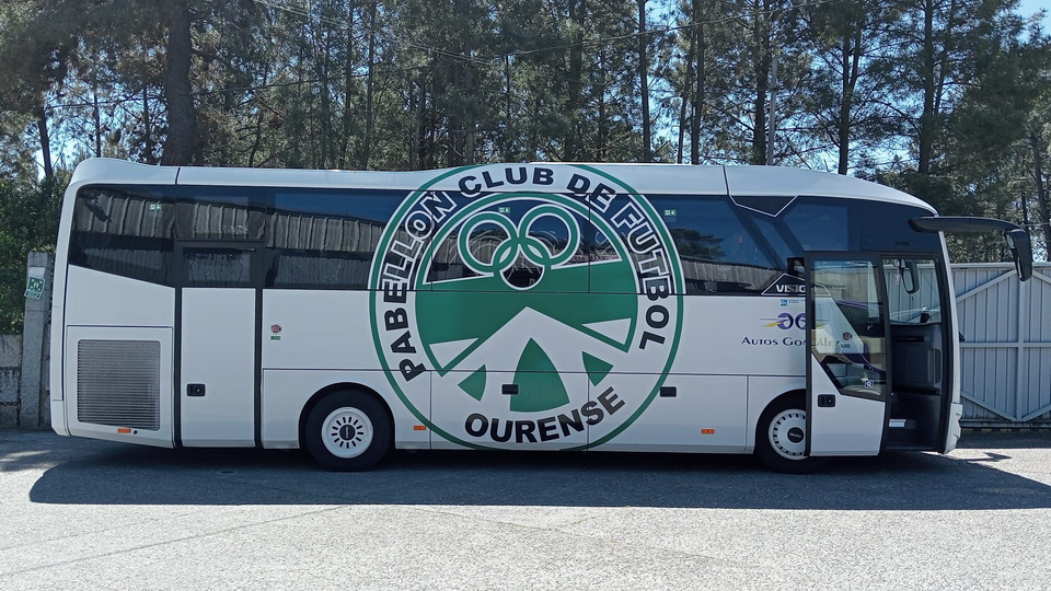 No vehículo loce o escudo do club, que agradece as facilidades dadas pola empresa de transporte para a rotulación do autobús.