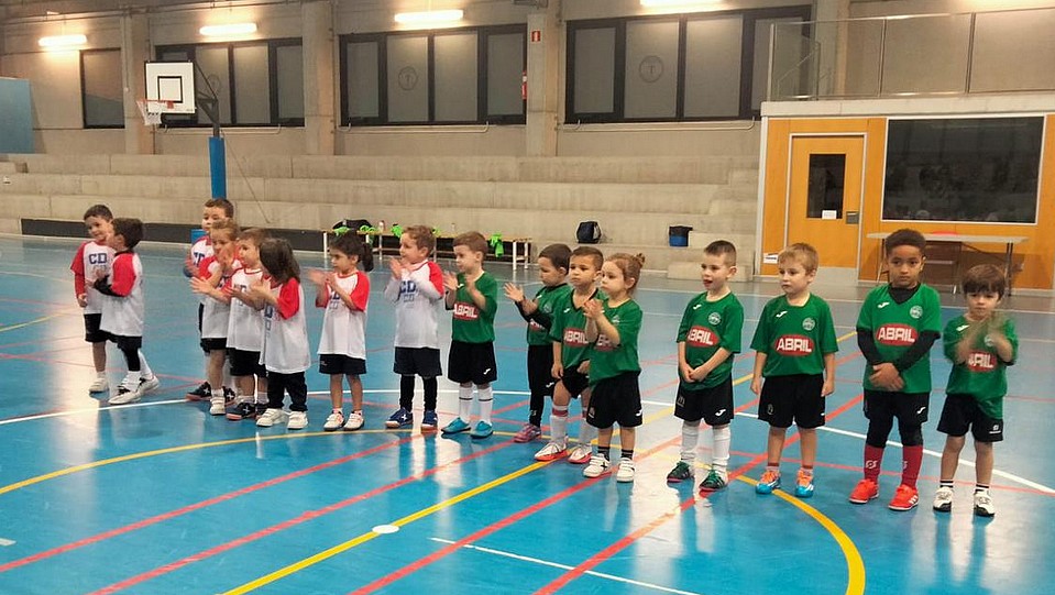 Un grupo de alumnos dos máis cativos - nados en 2018 e 2019- da Escola de Iniciación "José Luis López Iglesias" disfrutou este luns dunha actividade complemanetaria á que veñen desenvolvendo semanalmanete nas instalacións interiores do Pabellón de Os Remedios.