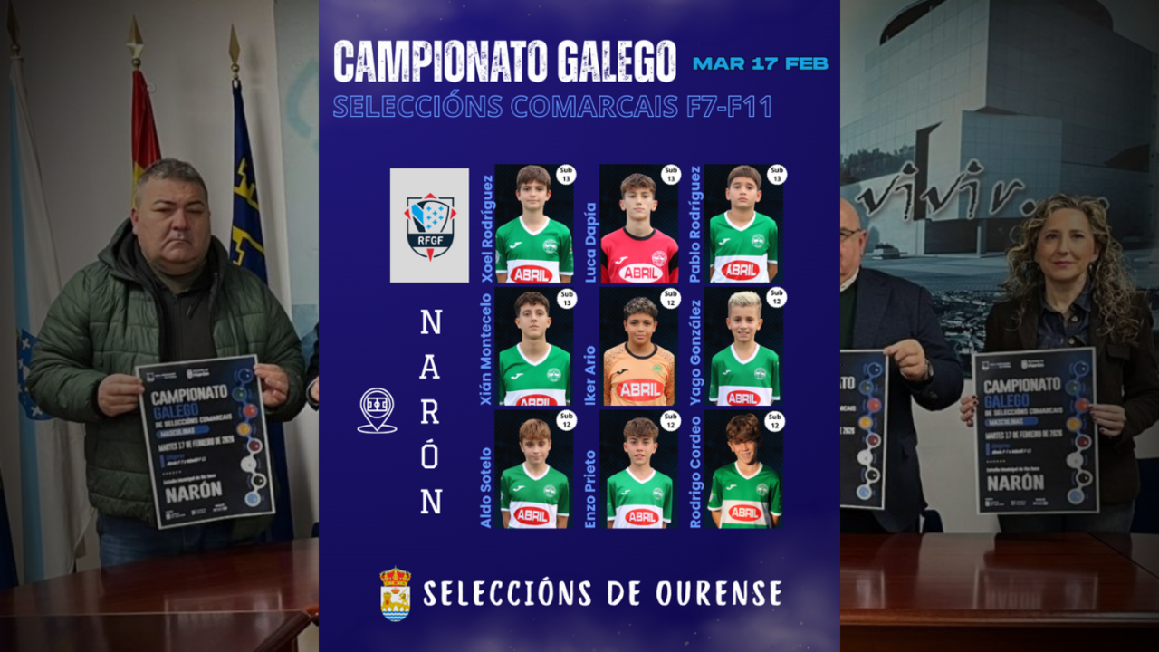 O fútbol base branquiverde volverá estar amplamente representado nunha nova cita do fútbol autonómico. Ata nove xogadores do club foron convocados para disputar o Campionato Galego de Seleccións Comarcais Sub-13 e Sub-12, nas modalidades de Fútbol 7 e Fútbol 11, que se celebrará este martes 17 de febreiro no campo de Río Seco, en Narón.