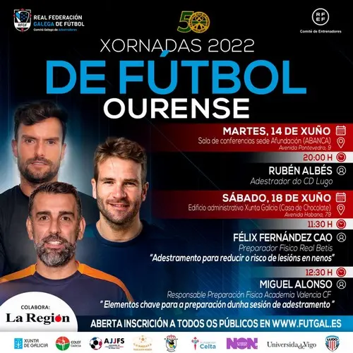 Será no salón de actos do edificio administrativo da Xunta de Galicia (Casa do Chocolate) ás 11.30 horas cunha exposición do ourensán 𝐅é𝐥𝐢𝐱 𝐂𝐚𝐨, 𝐩𝐫𝐞𝐩𝐚𝐫𝐚𝐝𝐨𝐫 𝐟í𝐬𝐢𝐜𝐨 𝐝𝐨 𝐫𝐞𝐜𝐞𝐧𝐭𝐞 𝐜𝐚𝐦𝐩𝐢ó𝐧 𝐝𝐚 𝐂𝐨𝐩𝐚 𝐝𝐨 𝐑𝐞𝐢, 𝐨 𝐑𝐞𝐚𝐥 𝐁𝐞𝐭𝐢𝐬, que versará sobre "𝐀𝐝𝐞𝐬𝐭𝐫𝐚𝐦𝐞𝐧𝐭𝐨 𝐩𝐚𝐫𝐚 𝐫𝐞𝐝𝐮𝐜𝐢𝐫 𝐨 𝐫𝐢𝐬𝐜𝐨 𝐝𝐞 𝐥𝐞𝐬𝐢ó𝐧𝐬 𝐞𝐧 𝐧𝐞𝐧𝐨𝐬".