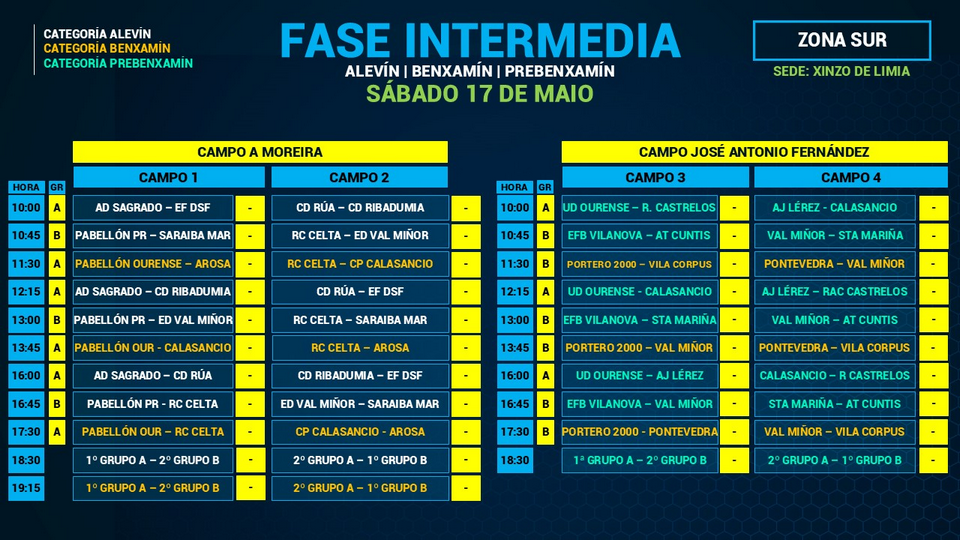 Xa temos horarios da Fase Intermedia en Xinzo