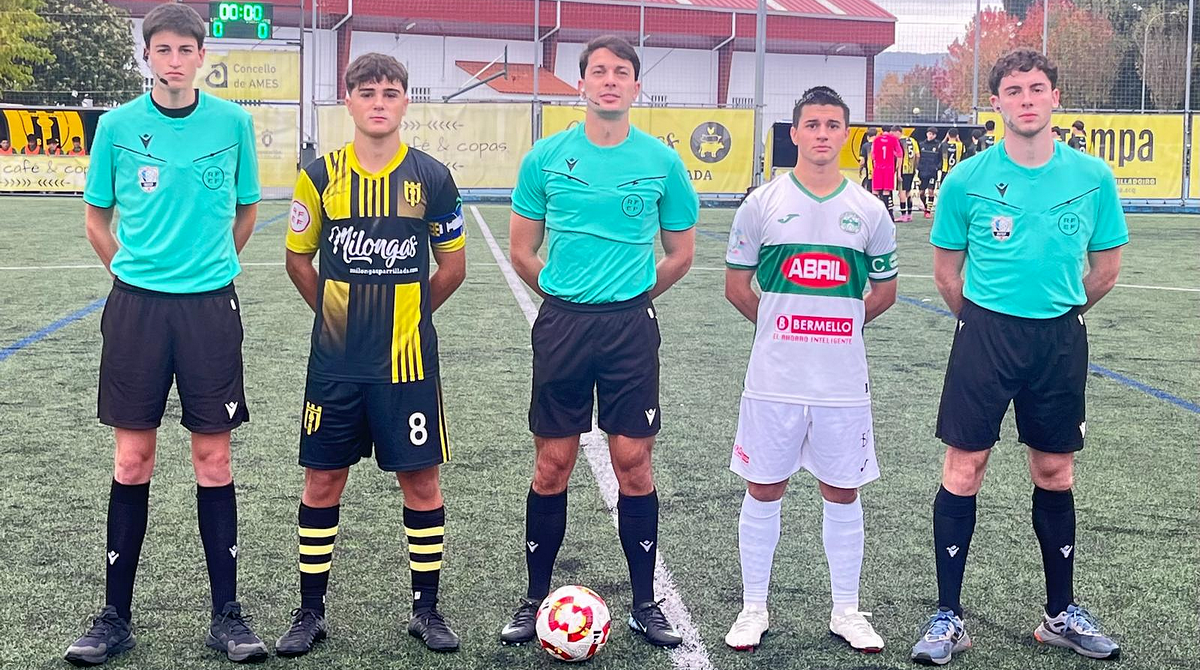 Árbitro:  Raúl García Veiras, asistido nas bandas por Troitiño Pose e Rivas Boquete (Comité Galego-Santiago). Amonestaron a Román (m.54) e Daniel (m.90) nos locais e nos visitantes a André (m.85).